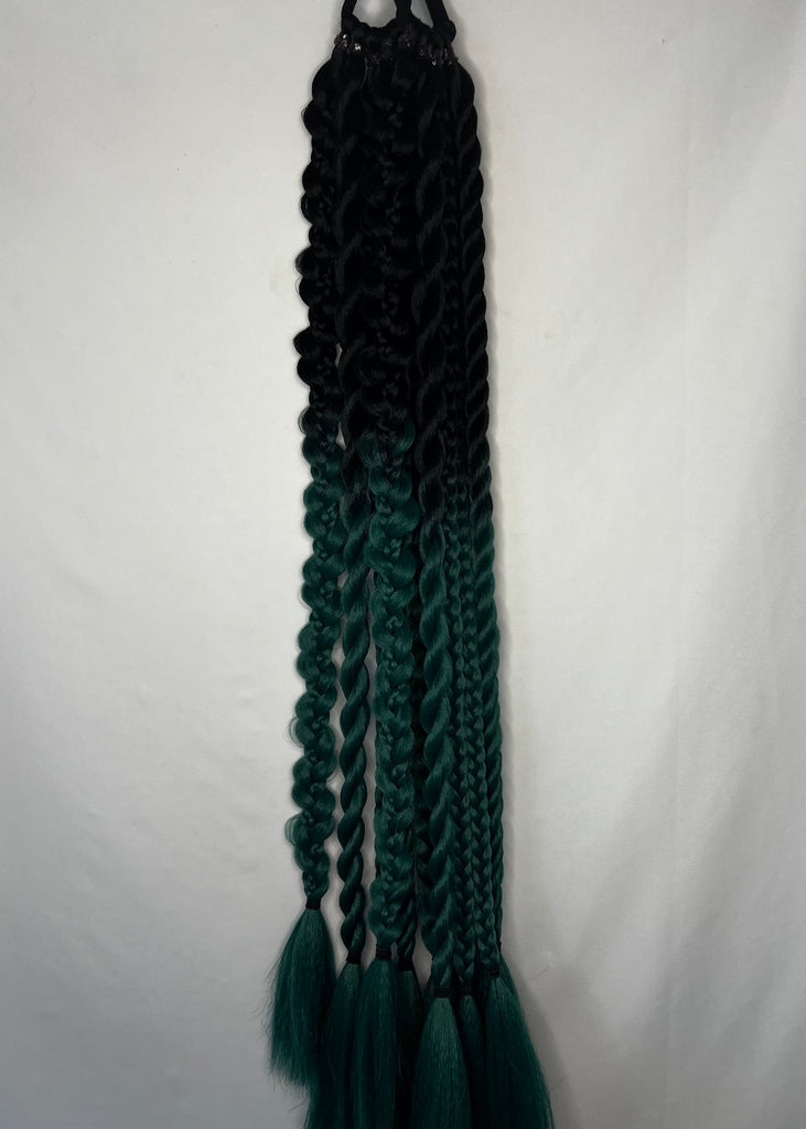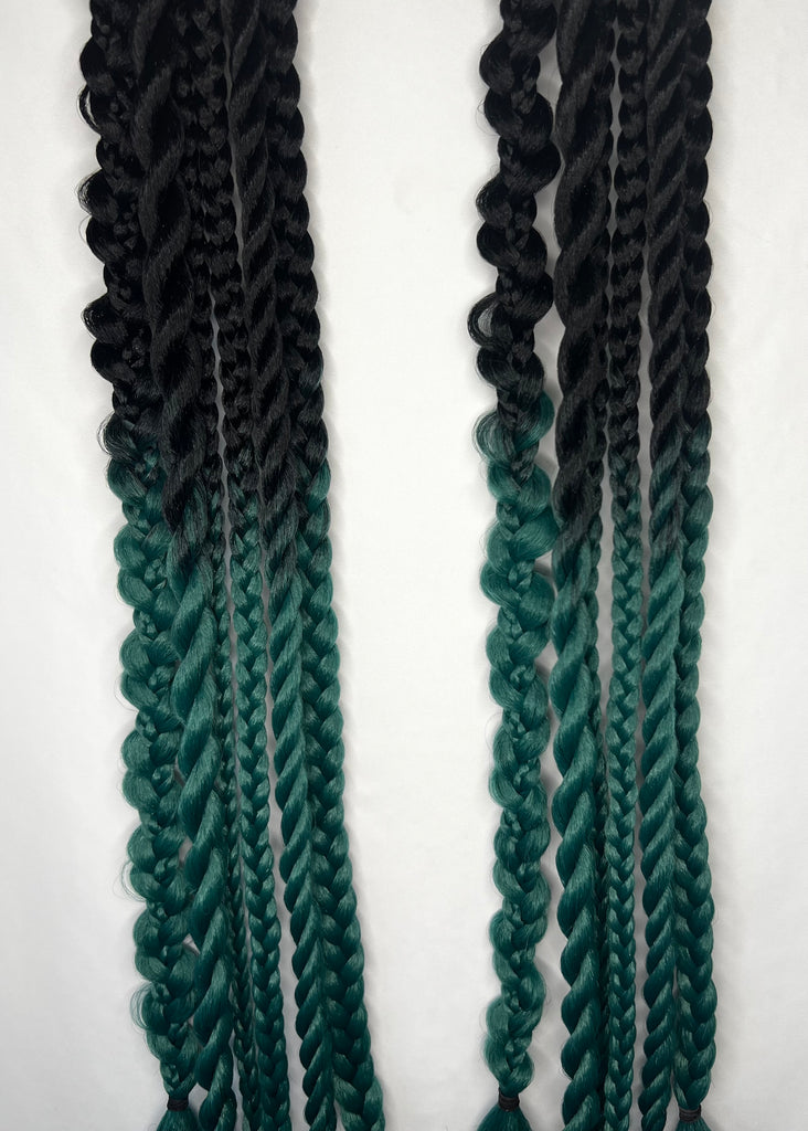 Black Green Braids, Dark Green Ombre Festival Braids -- MEDIUM WEIGHT