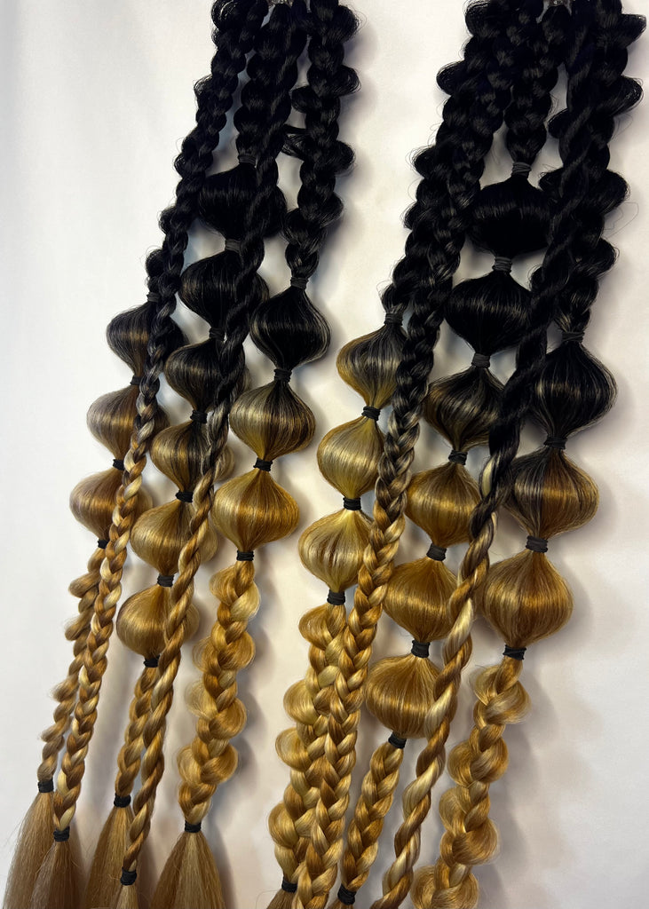 2 Unbraided pieces on hair elastics to blend with your hair, or wrap around hair ties, included (reusable 2-3 times, based on care)