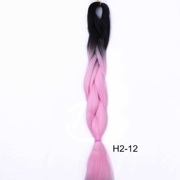Black/Blue+Light Blue+Pink+Light Pink Ombre Braiding Hair