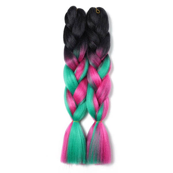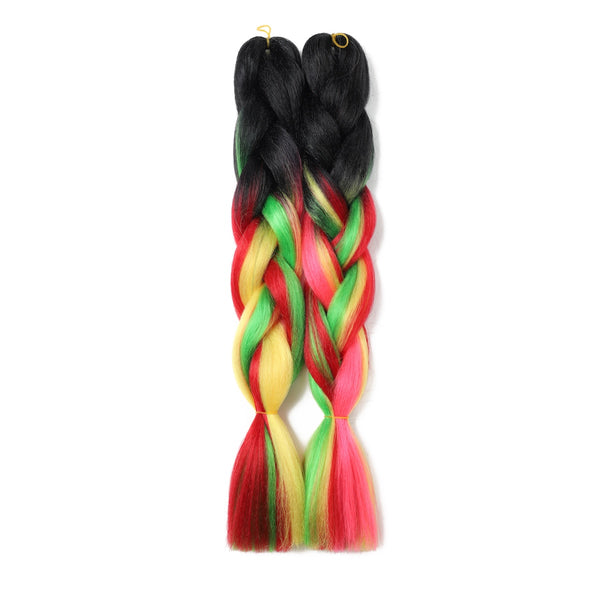 Black/Green+Yellow+Pink+Red Ombre Braiding Hair