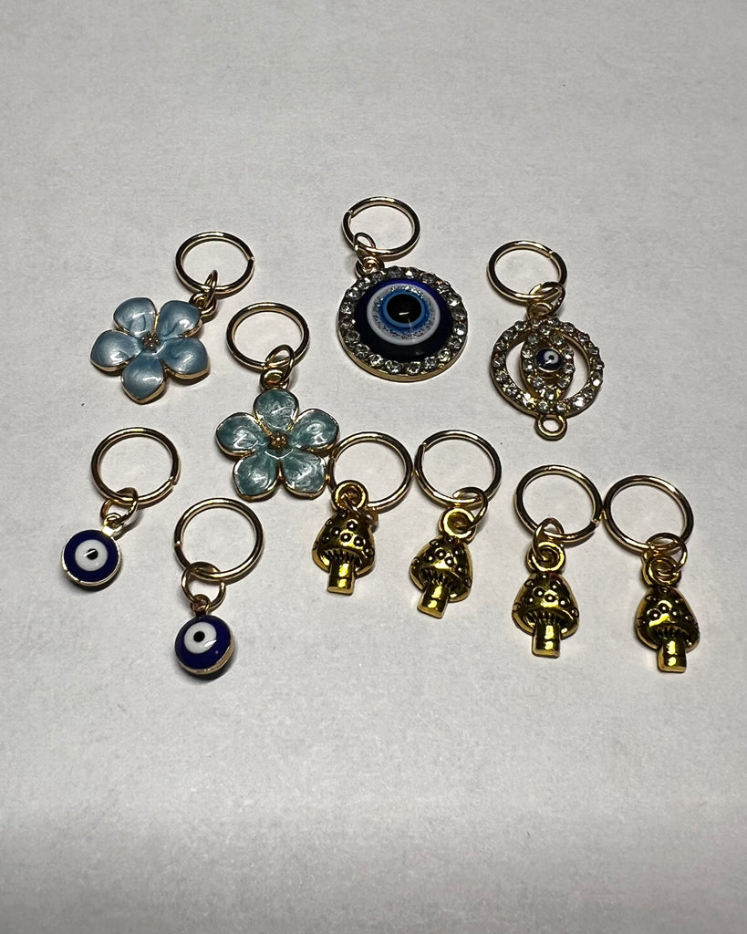 These charms are attached to jump rings for easy integration into your designs. Made more specifically with hairstyles and braids in mind, each charm pack offers a variety of themes and colors to suit your unique style. Whether you're designing hair art, bracelets, necklaces, or even keychains, these charms add a personalized flair that sets your creations apart. Explore our diverse selection and find the charm pack that speaks to your imagination.