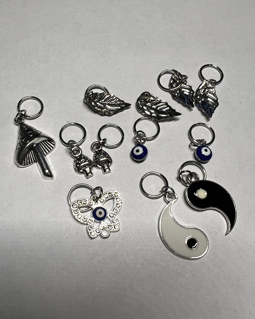 These charms are attached to jump rings for easy integration into your designs. Made more specifically with hairstyles and braids in mind, each charm pack offers a variety of themes and colors to suit your unique style. Whether you're designing hair art, bracelets, necklaces, or even keychains, these charms add a personalized flair that sets your creations apart. Explore our diverse selection and find the charm pack that speaks to your imagination.