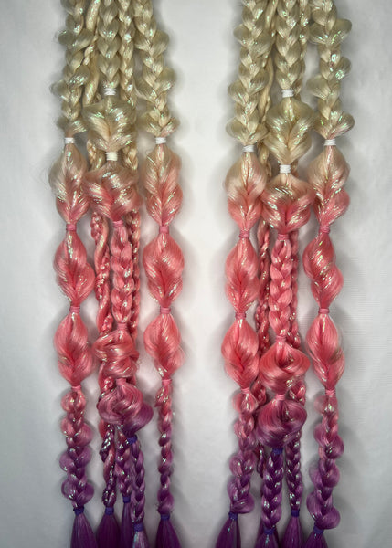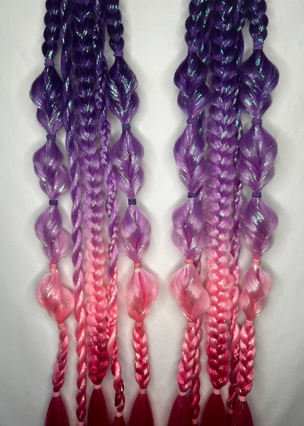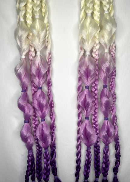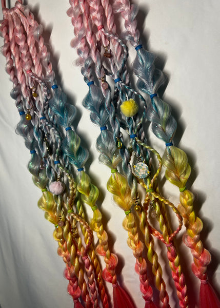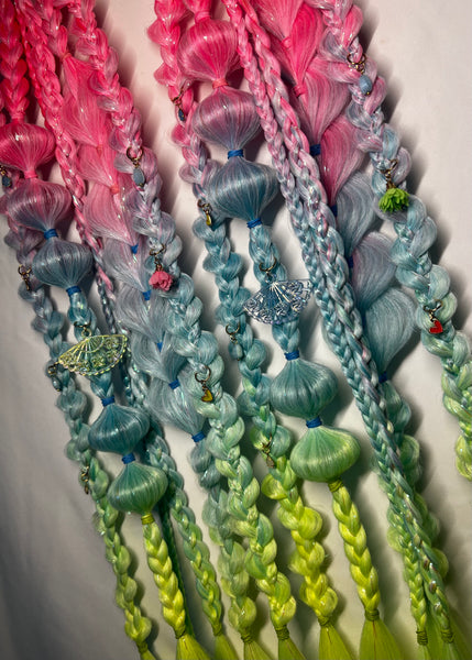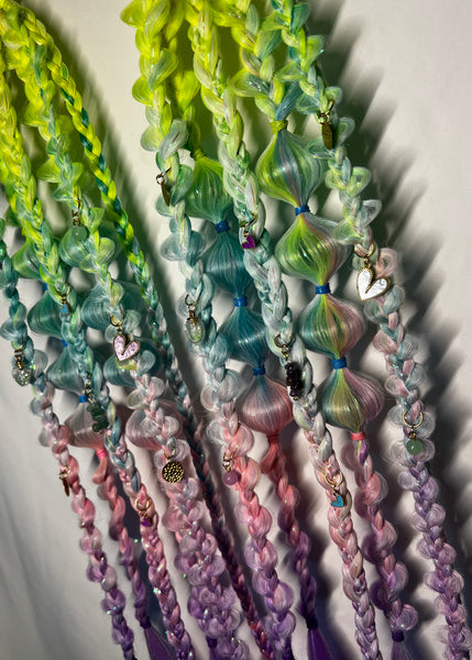 EDC Theme Braided Ponytails, Tie-Dye Candy Braids, Electric Daisy Carnival Festival Hair -- MEDIUM WEIGHT $80.00