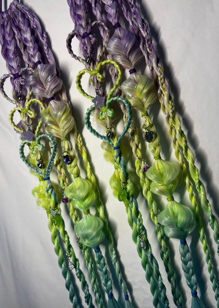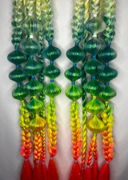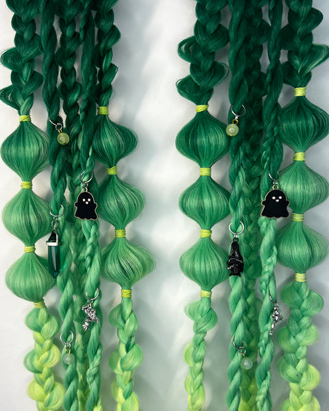 Hulaween Theme Braided Ponytails, Green Ombre Ghost Braids, Halloween Festival Hair -- MEDIUM WEIGHT $80.00