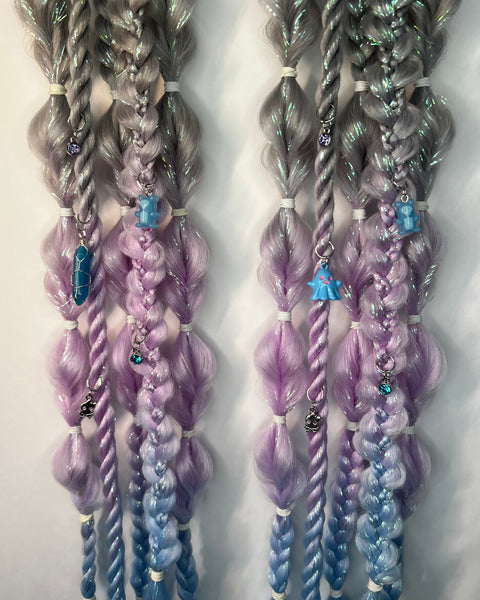 Hulaween Theme Braided Ponytails, Silver Blue Skeleton Braids, Halloween Festival Hair -- MEDIUM WEIGHT $80.00