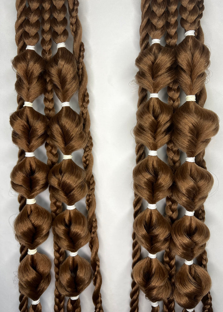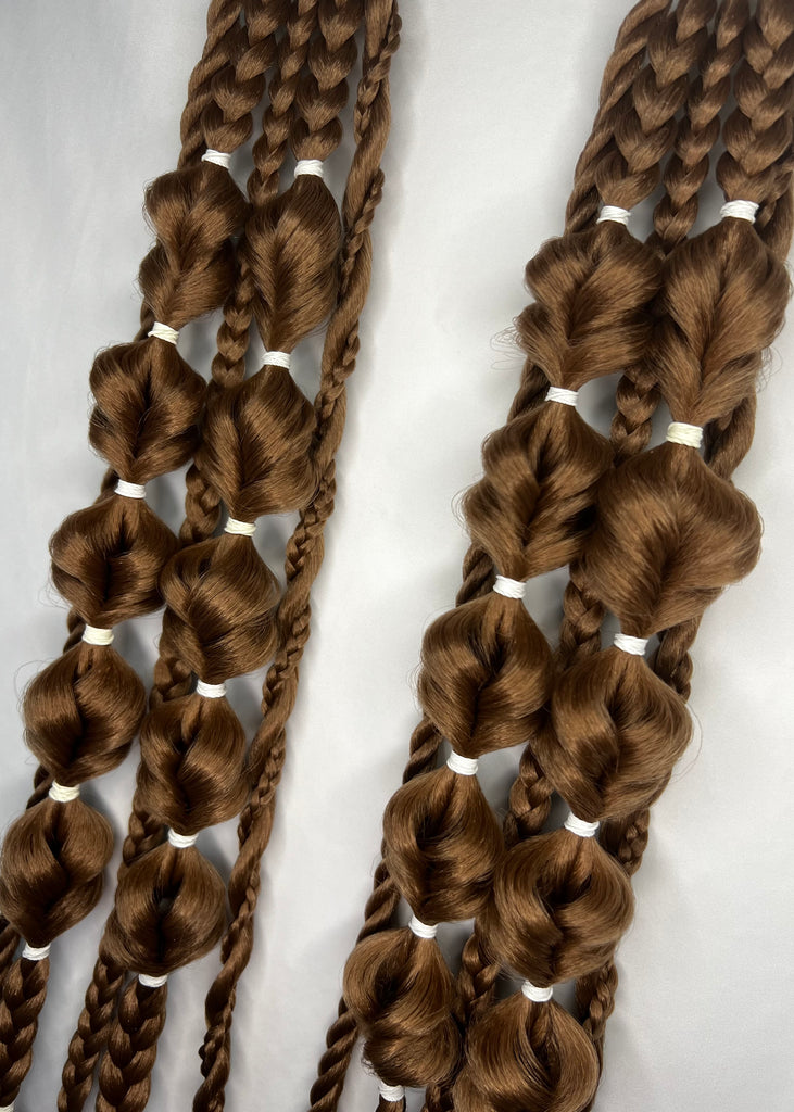 2 Unbraided pieces on hair elastics to blend with your hair, or wrap around hair ties, included (reusable 2-3 times, based on care)