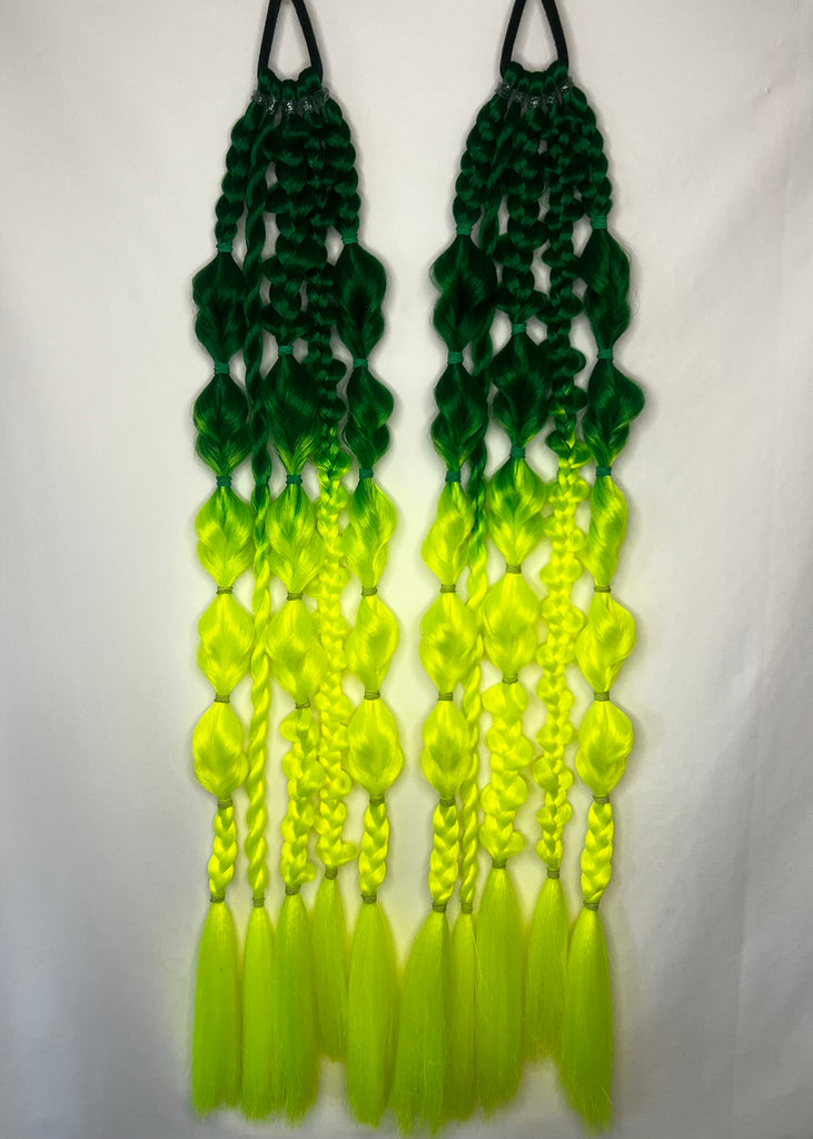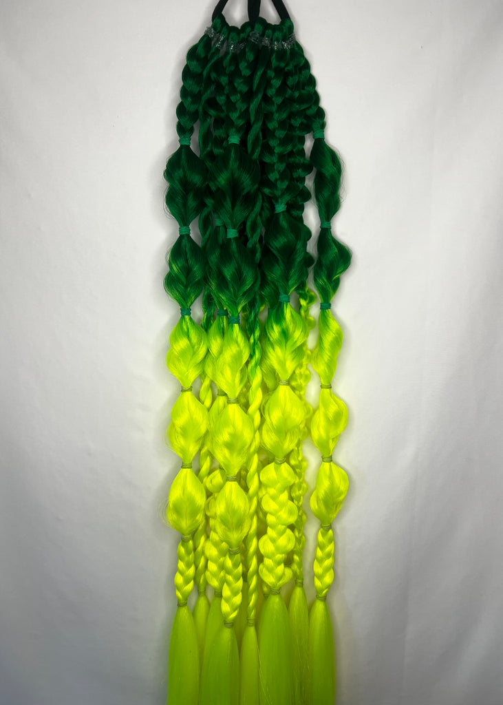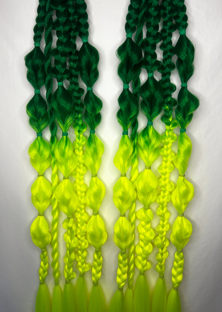 Dark Green to Neon Yellow Ombre Braids, Green Ombre Festival Braids -- MEDIUM WEIGHT