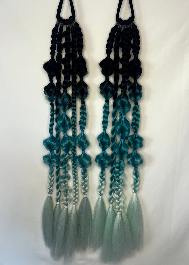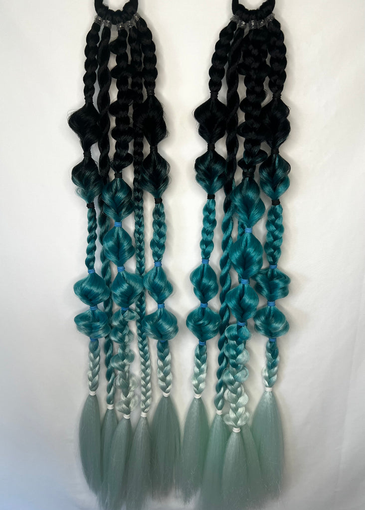 2 Unbraided pieces on hair elastics to blend with your hair, or wrap around hair ties, included (reusable 2-3 times, based on care)