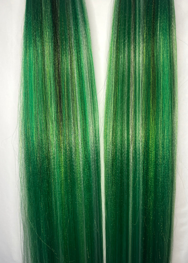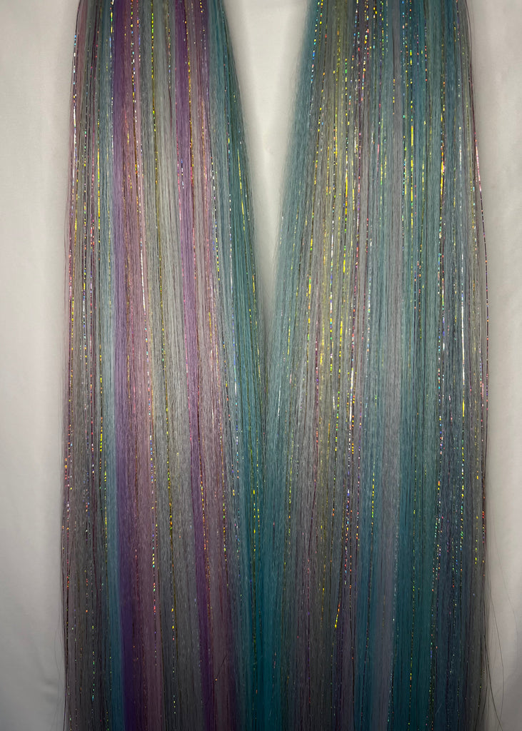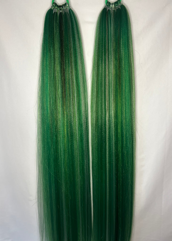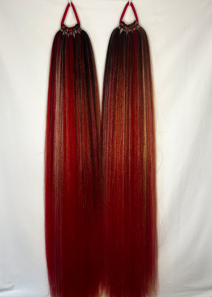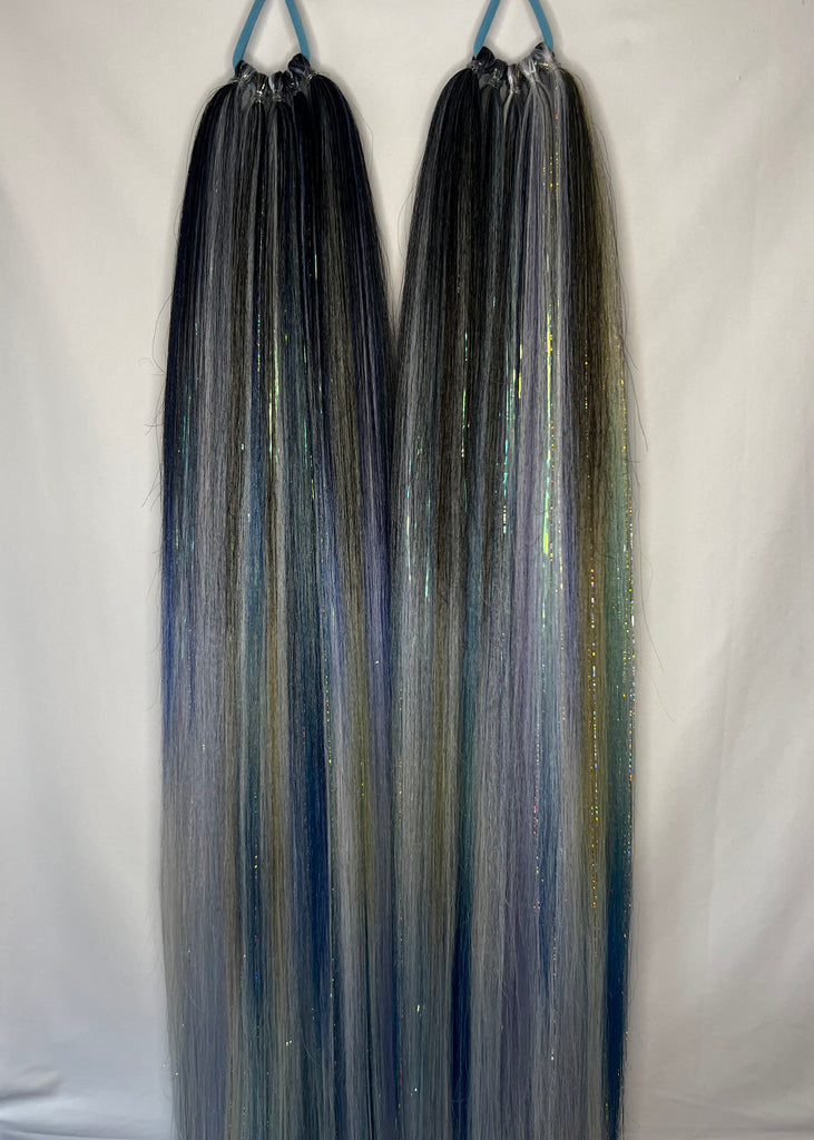 Transform your festival look with unbraided premixed tie in ponytails of synthetic hair for you to braid how you wish! Each ponytail is custom mixed, containing multiple colors to coordinate with your style. After mixing, the bundle is straightened with a flat iron to improve the look and make it easier to work with.