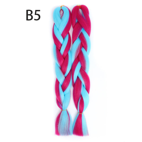 Black/Blue+Light Blue+Pink+Light Pink Ombre Braiding Hair