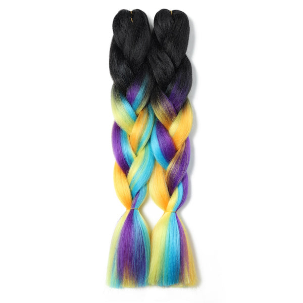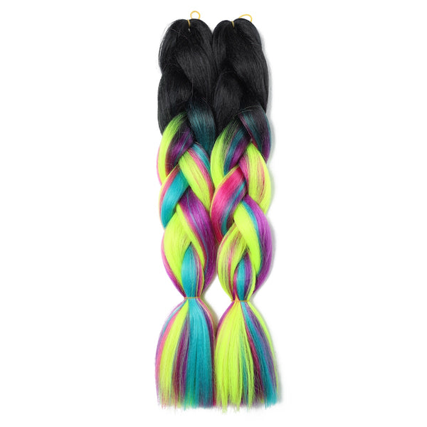 Black/Neon: Purple+Yellow+Teal+Pink Ombre Braiding Hair