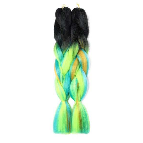 Black/Neon: Yellow+Blue+Green+Orange Ombre Braiding Hair