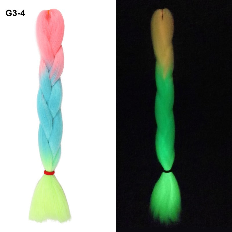 Pink/Blue/Neon Yellow Glow Braiding Hair