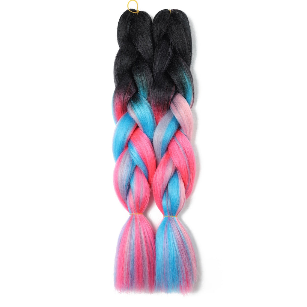 Black/Blue+Light Blue+Pink+Light Pink Ombre Braiding Hair