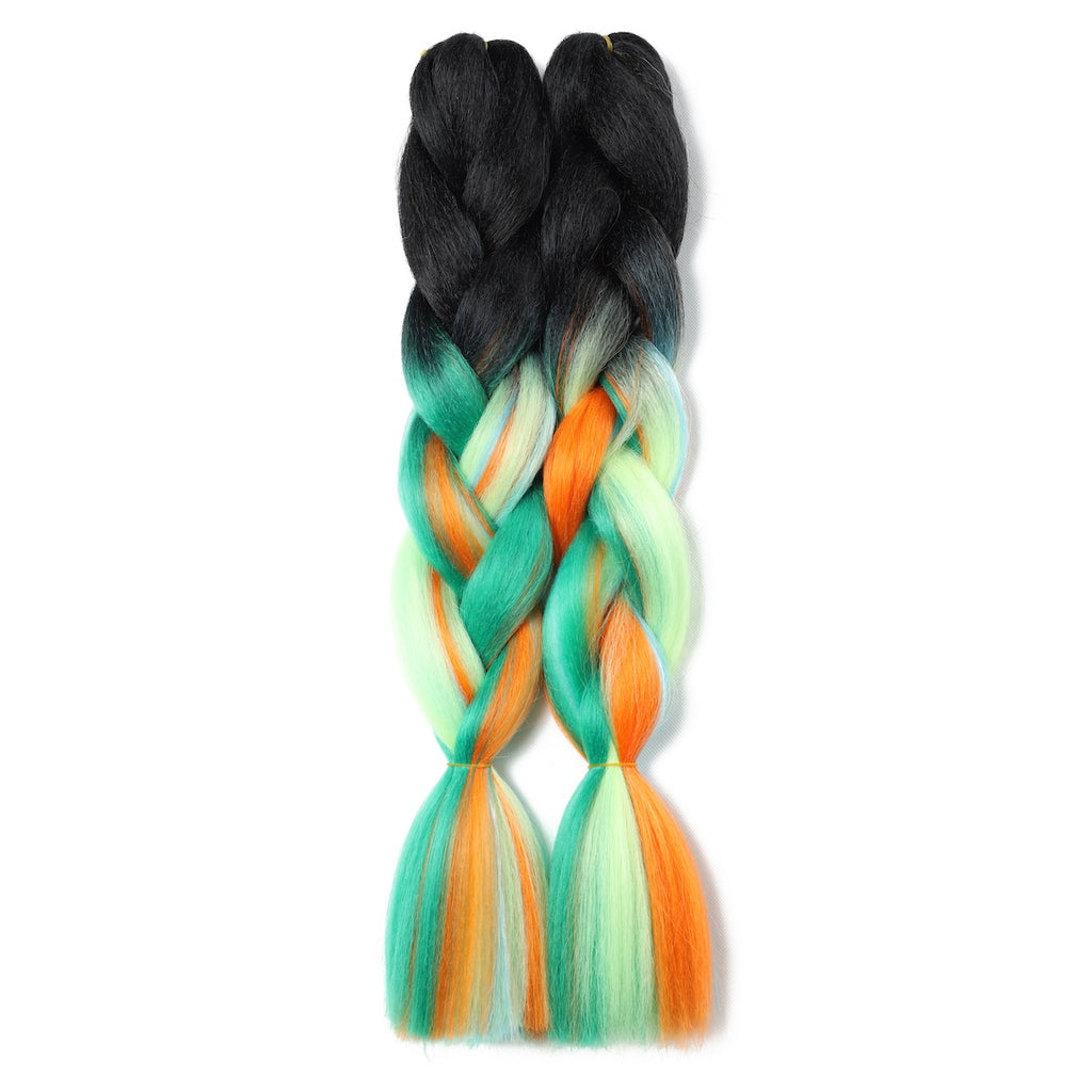 Black/Teal Green+Orange+Yellow+White Ombre Braiding Hair