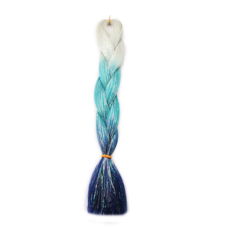 White/Teal/Navy Blue Tinsel Braiding Hair