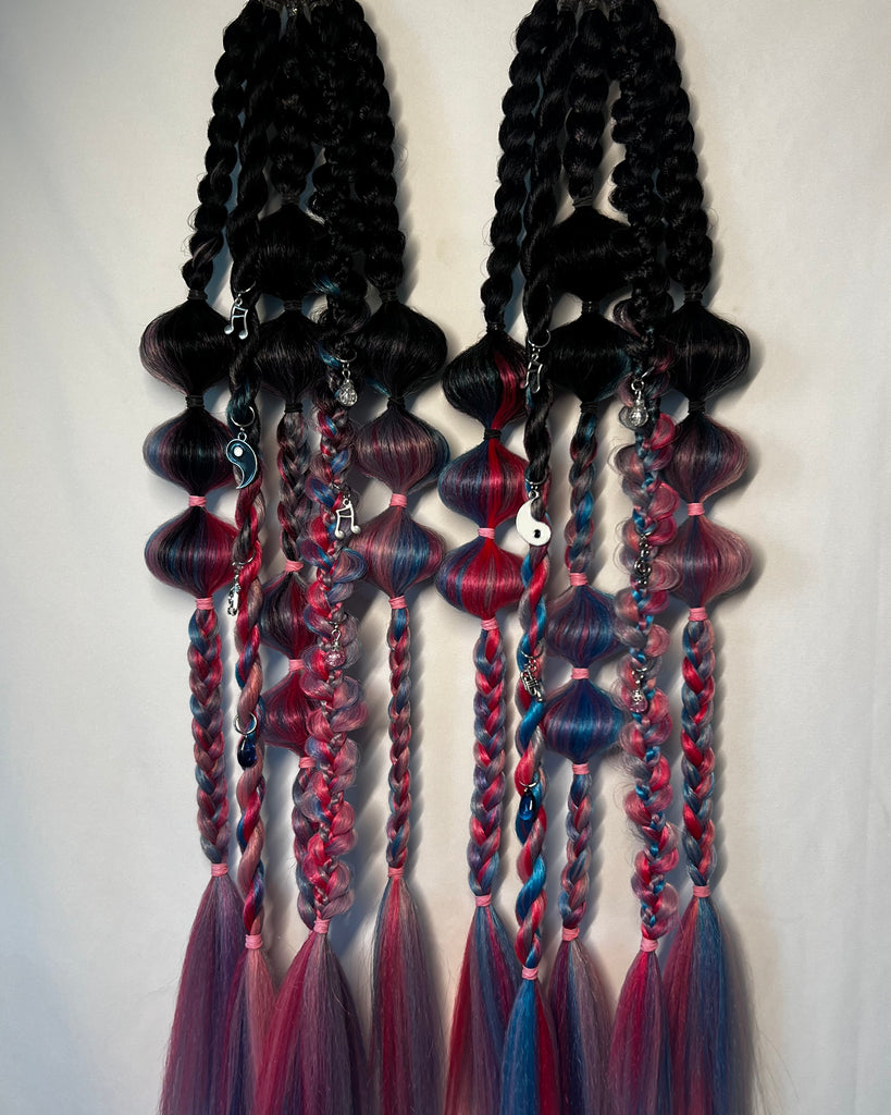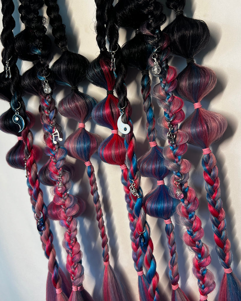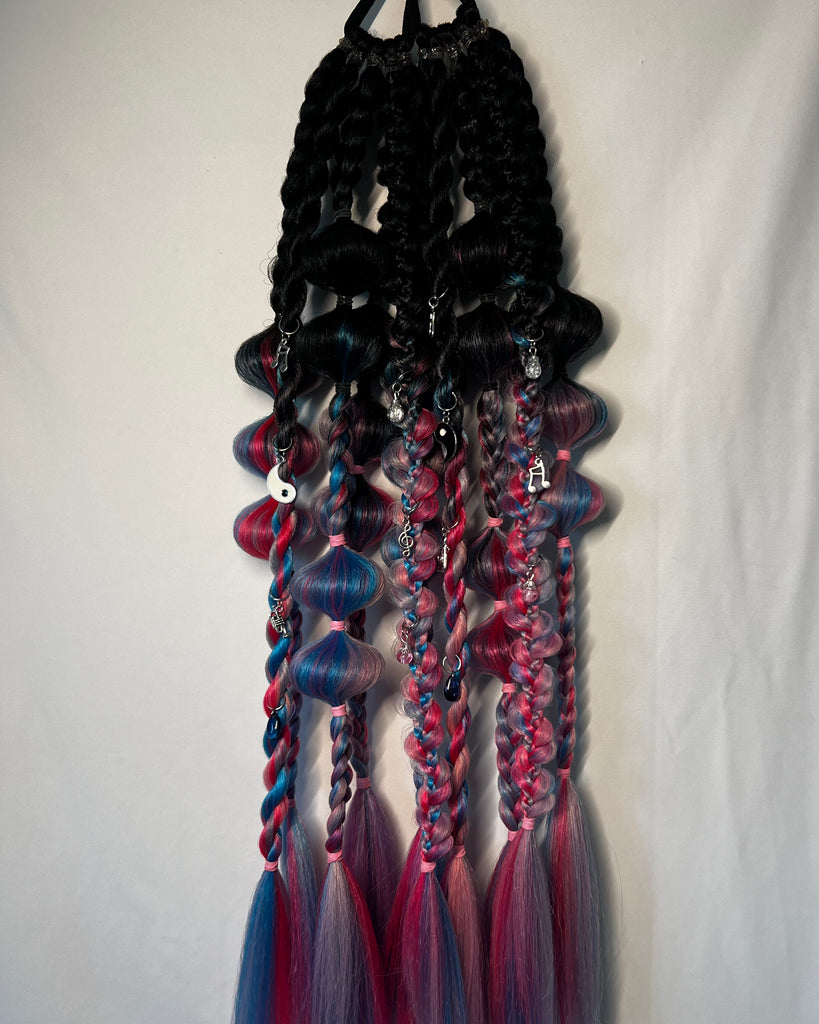 Eternal NYE Braided Ponytails, Gemini Griz Theme Festival Braids, Pink Blue Festival Hair -- MEDIUM WEIGHT