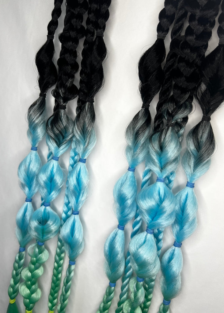 Black Blue Mint Braids, Cool Toned Ombre Festival Braids -- MEDIUM WEIGHT