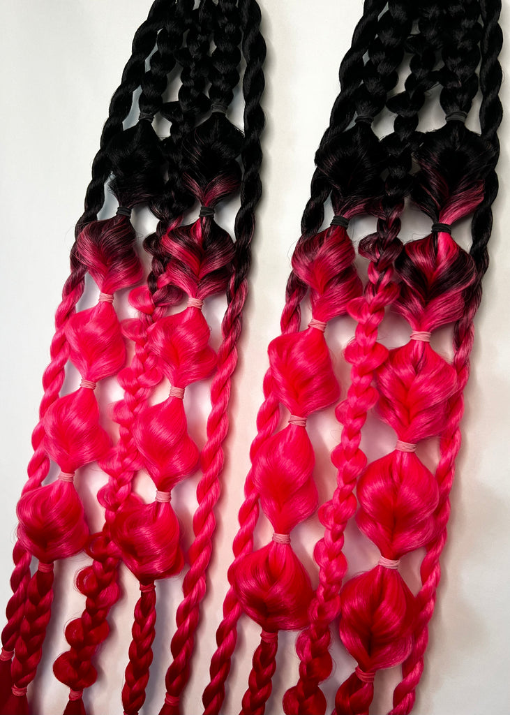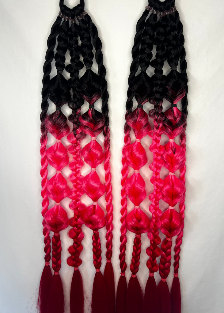 Black/Pink/Red Ombre Braids, Multicolor Ombre Festival Braids -- MEDIUM WEIGHT