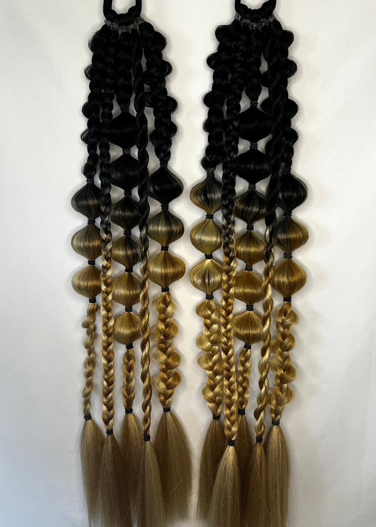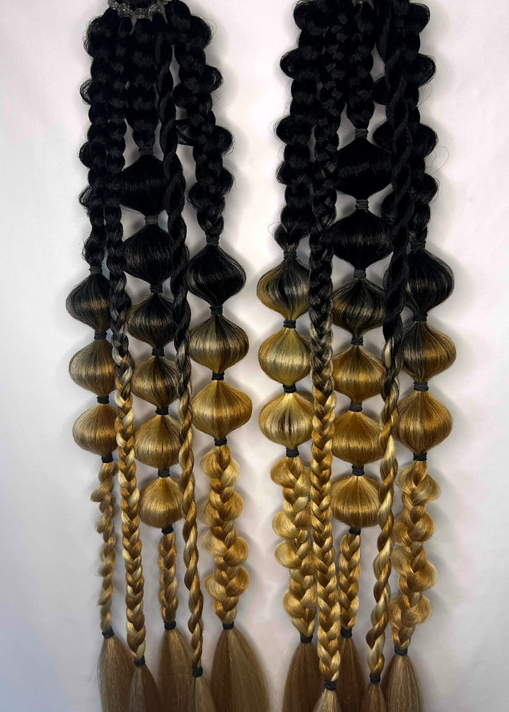 2 Unbraided pieces on hair elastics to blend with your hair, or wrap around hair ties, included (reusable 2-3 times, based on care)