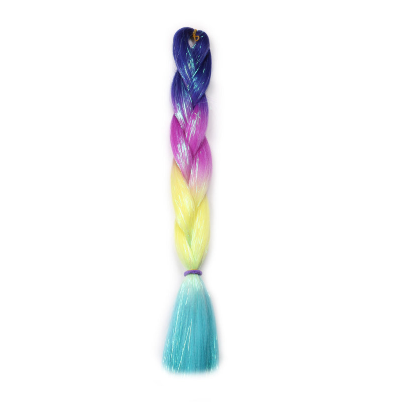 Dark Purple/Purple/Yellow/Blue Tinsel Braiding Hair